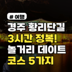 경주 황리단길에서 짧은 시간 동안최고의 놀거리 데이트 코스를 3시간 안에 정복할 수 있을까요? 수많은 볼거리와 맛집, 그리고 이색적인 체험이 가득한 황리단길은사랑하는 사람과 함께 추억을 만들기에 최적의 장소입니다. 하지만 넓은 지역과 방대한 정보 속에서어디부터 어떻게 시작해야 할지 막막하게 느껴질 때도 있죠. 시간은 한정되어 있고, 즐기고 싶은 것은 너무 많아서계획을 세우는 것 자체가 고민이 될 수 있습니다. … Read more
