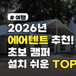 초보 캠퍼분들, 혹시 텐트 설치 때문에캠핑 시작이 망설여지시나요?복잡한 폴대 조립과 무거운 텐트 설치는캠핑의 즐거움을 시작하기도 전에 지치게 만들 수 있죠. 하지만 걱정 마세요. 이런 고민을 해결해 줄 에어텐트가 있으니까요. 2026년에는 더욱 진화된 에어텐트들이초보 캠퍼들에게 쉽고 편안한 캠핑 경험을 선사하고 있습니다. 과연 어떤 에어텐트들이설치 편의성과 성능을 모두 잡았을까요?지금부터 2026년 초보 캠퍼를 위한설치 쉬운 에어텐트 TOP 5를 … Read more